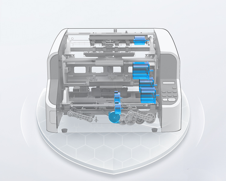 采用歐利晶扭矩限制器,分紙輪進行反轉分離紙張;分紙強度自適應(弱、中、高 3檔可控)